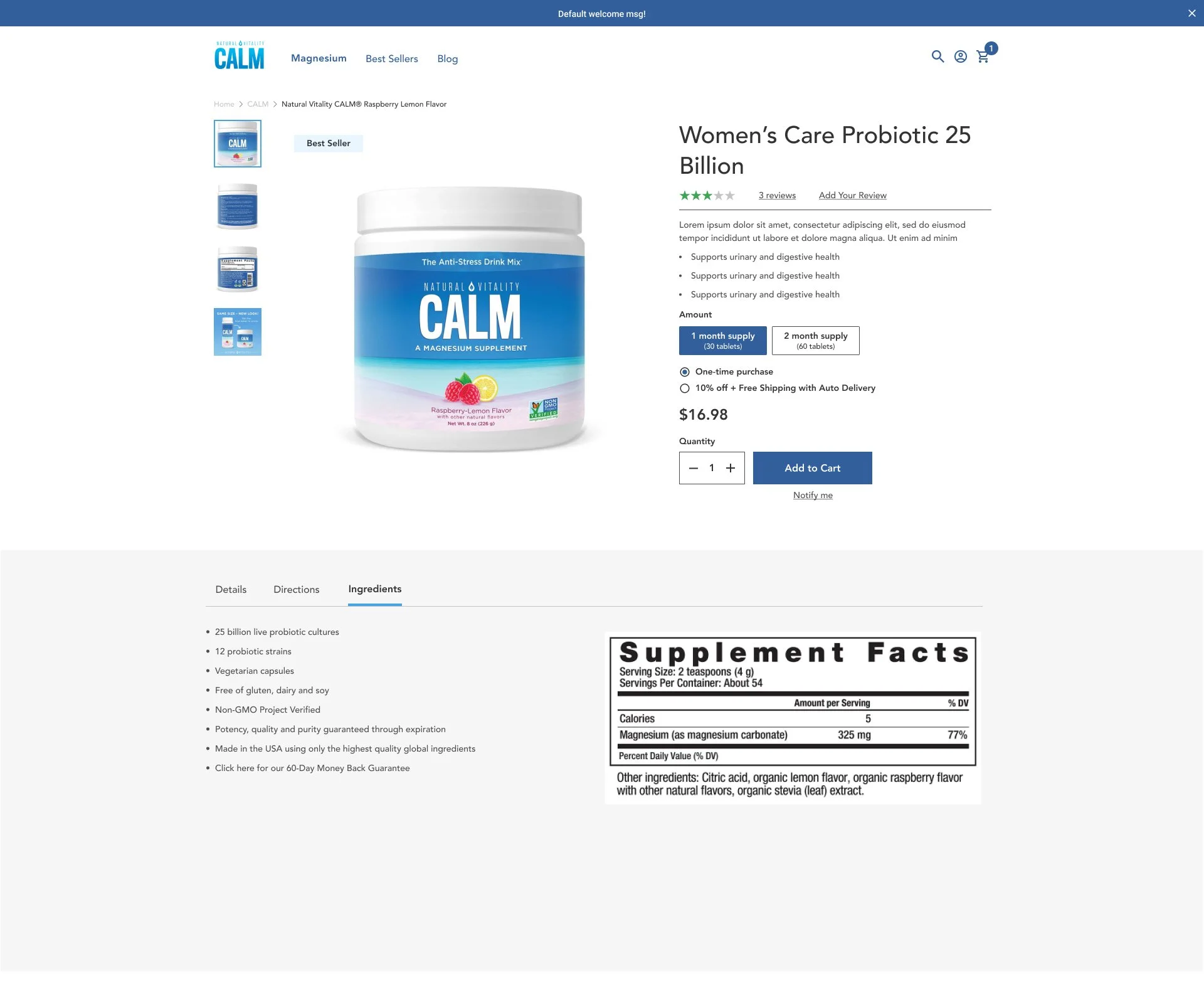 CHALLENGE: Natural Vitality had a strong brand identity, but its digital presence felt fragmented. The site and its different platforms had inconsistent visuals, varying user experiences, and lacked a unified design approach. It was tough to find the most important info and the auto-delivery clicks were pretty low. Our challenge was to create a cohesive design system that ensured brand consistency, ease of use, and a seamless experience across all digital touchpoints so customers could easily find the products they wanted.